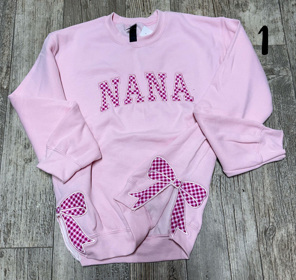 Gigi ,Auntie,Nana Crewneck sweatshirt with side bows (plus sizes)